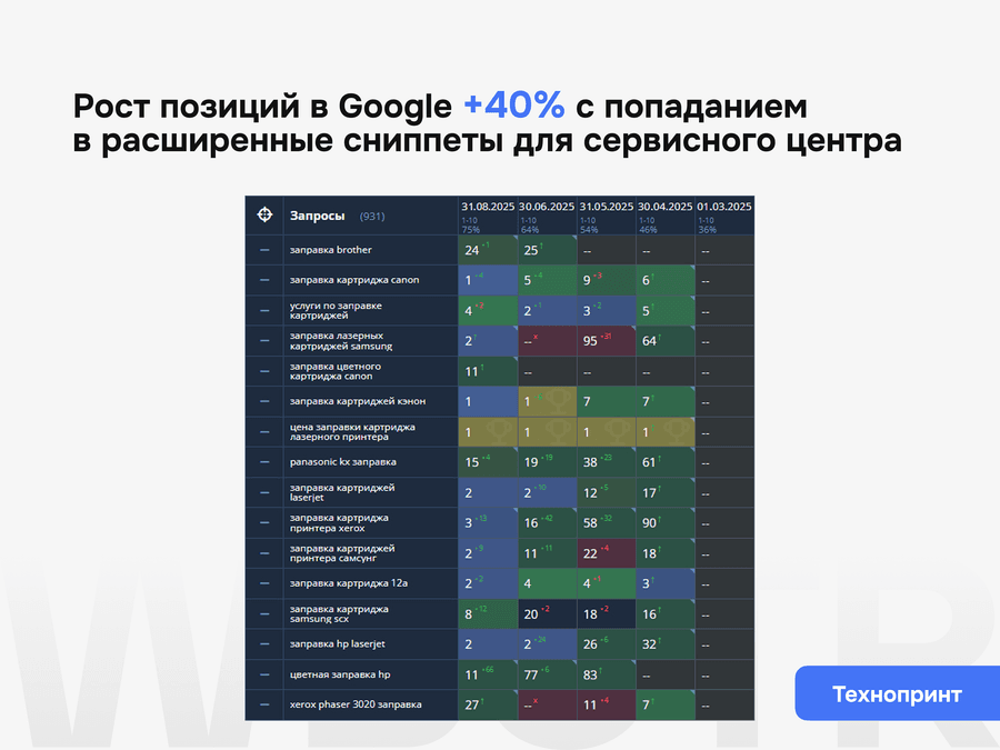 Первые изменения обычно видны после устранения технических и on-page ограничений, когда поисковые системы начинают по-другому считывать страницу. Более заметный эффект появляется позже, когда лендинг уже усилен по релевантности, структуре блоков и качеству конверсионного сценария.