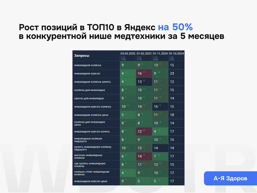 Для лендинга важно смотреть не только на видимость и трафик, но и на качество обращений. Мы оцениваем результат по индексации, динамике входов, поведению пользователей, глубине взаимодействия со страницей и реальным заявкам, которые лендинг начинает приносить из поиска.